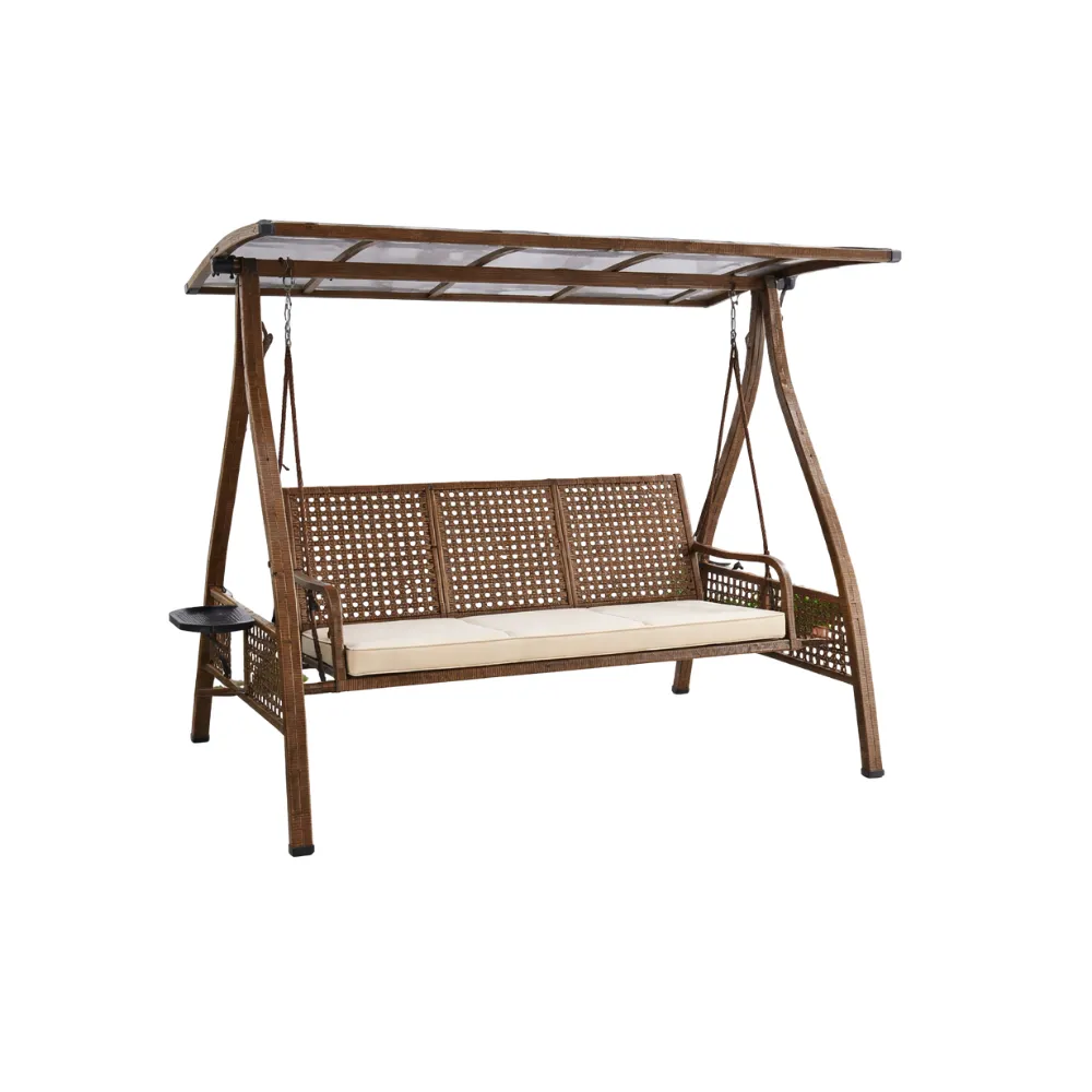 The swing includes a padded seat cushion with sponge filling, providing enhanced comfort for extended outdoor use.