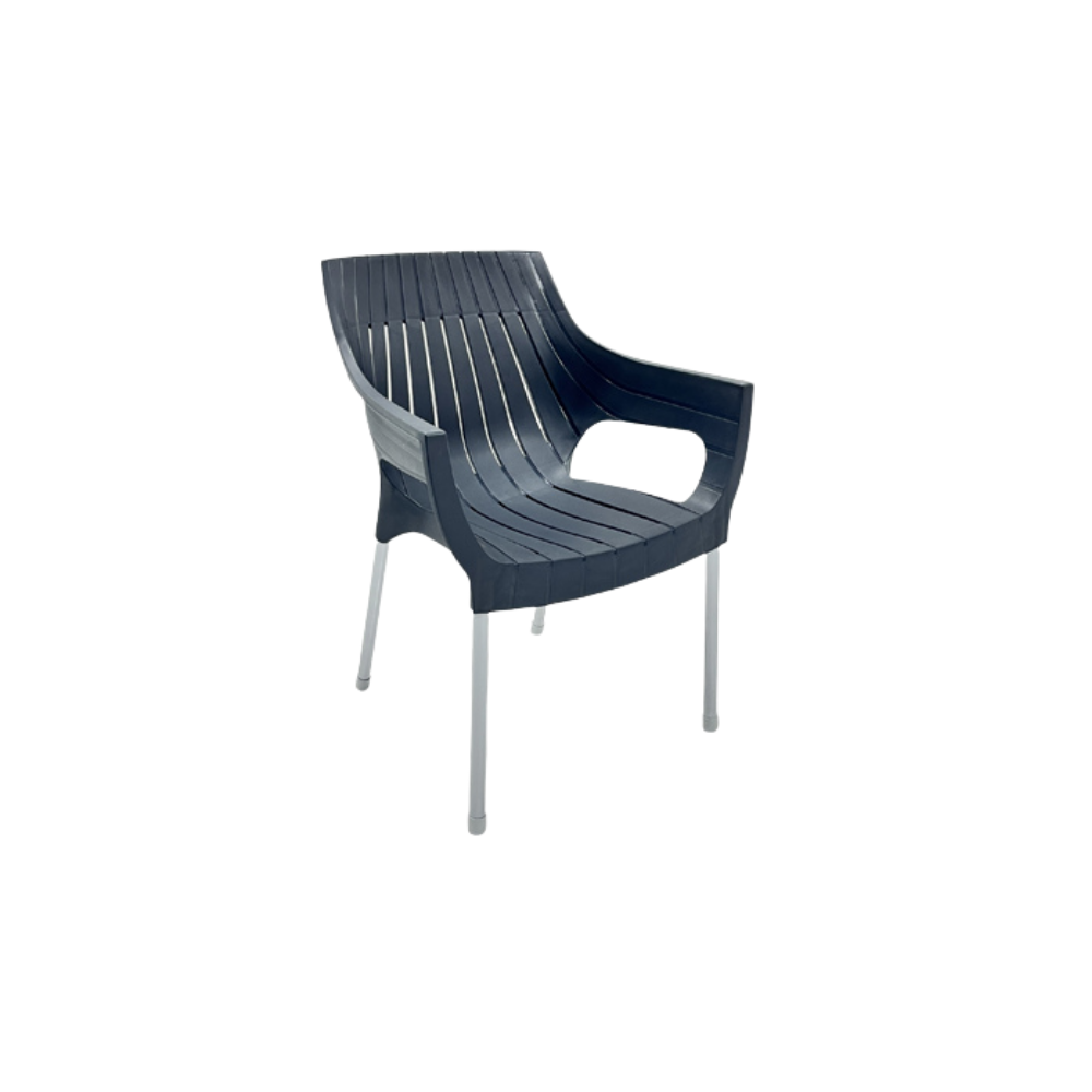 The Furni Oslo Armchair stands out with its modern curved lines, ergonomic seating and strong metal legs. Designed for long-term outdoor use, it provides both visual appeal and daily practicality.