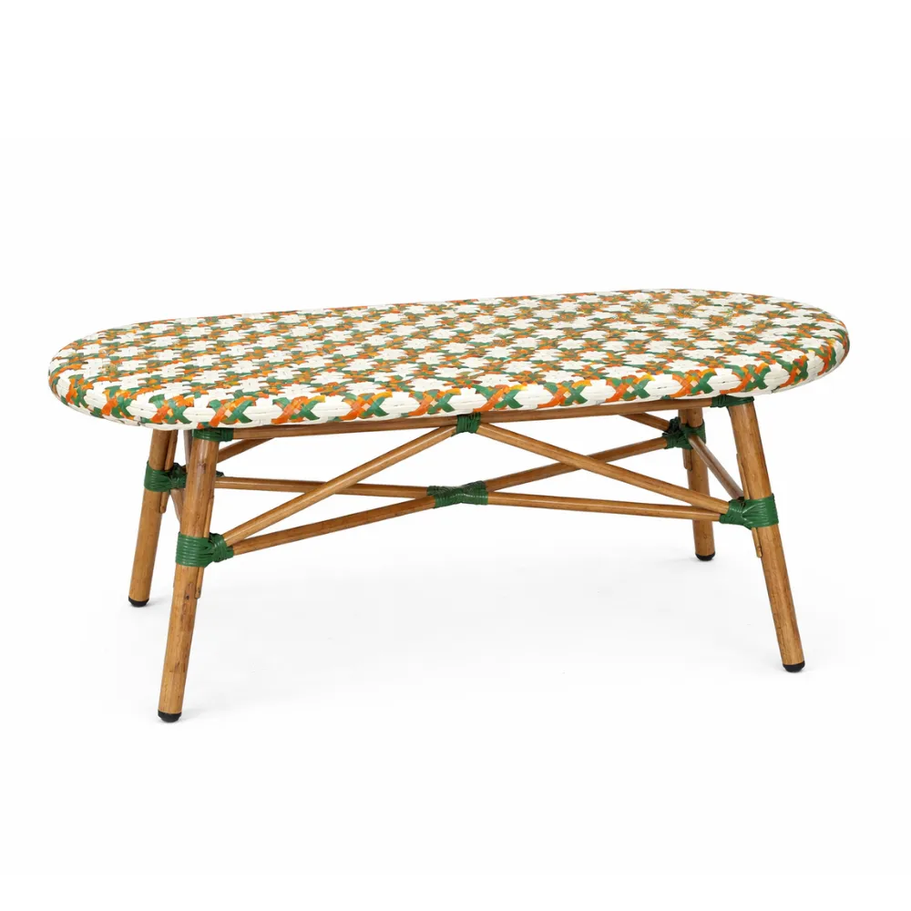Paris Lounge Coffee Table features a wide rectangular PE rattan tabletop with tempered glass and a durable aluminum frame, designed for lounge areas, cafés, and outdoor seating spaces.