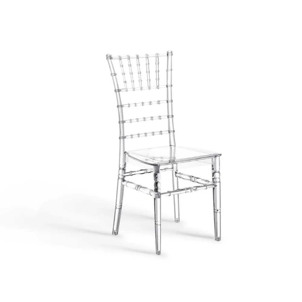 The Tiffany Chair PC preserves the well-known Tiffany form while adding a contemporary transparent finish. Its clean and elegant look makes it ideal for weddings, banquets, luxury events, and premium venues.