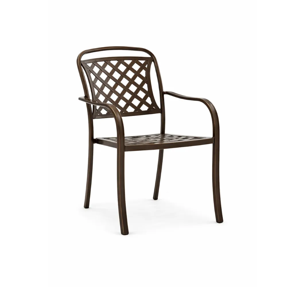 Vento Cast Aluminum Armchair features a clean lattice backrest and a lightweight cast aluminum structure, designed for versatile outdoor seating applications.
